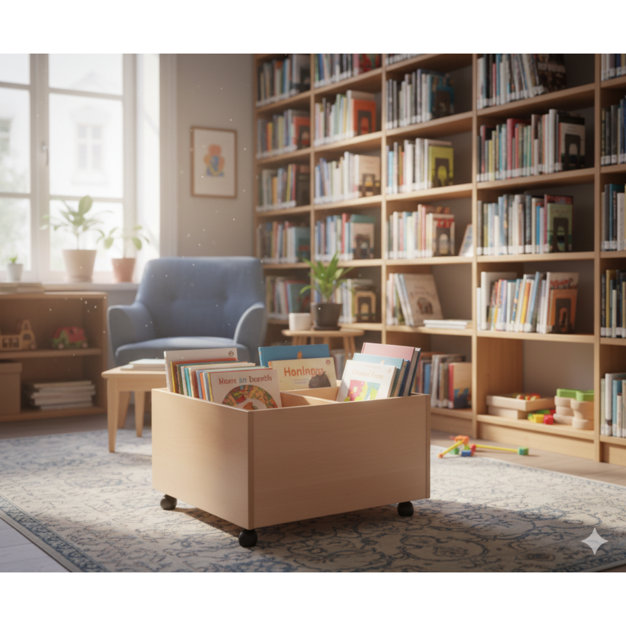 Optimisez votre espace avec ce bac à albums à roulettes, idéal pour le rangement des collections et albums dans les bibliothèques, médiathèques ou espaces de lecture pour enfants. Pratique et mobile, il facilite l'accès à vos ouvrages et permet de réorganiser facilement vos espaces de stockage.