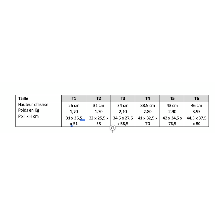 - Poids : 1,70 kg à 3,95 kg selon la taille