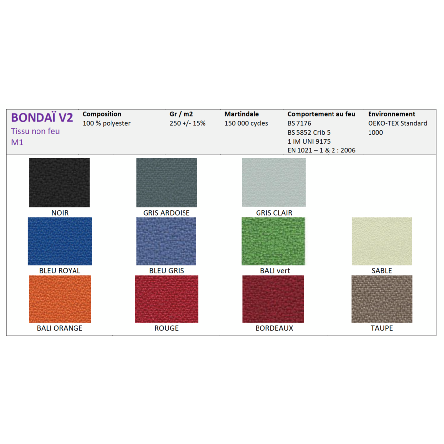 - Finition de qualité – Tissu varié avec classement au feu M1 ou M2 pour une sécurité accrue.