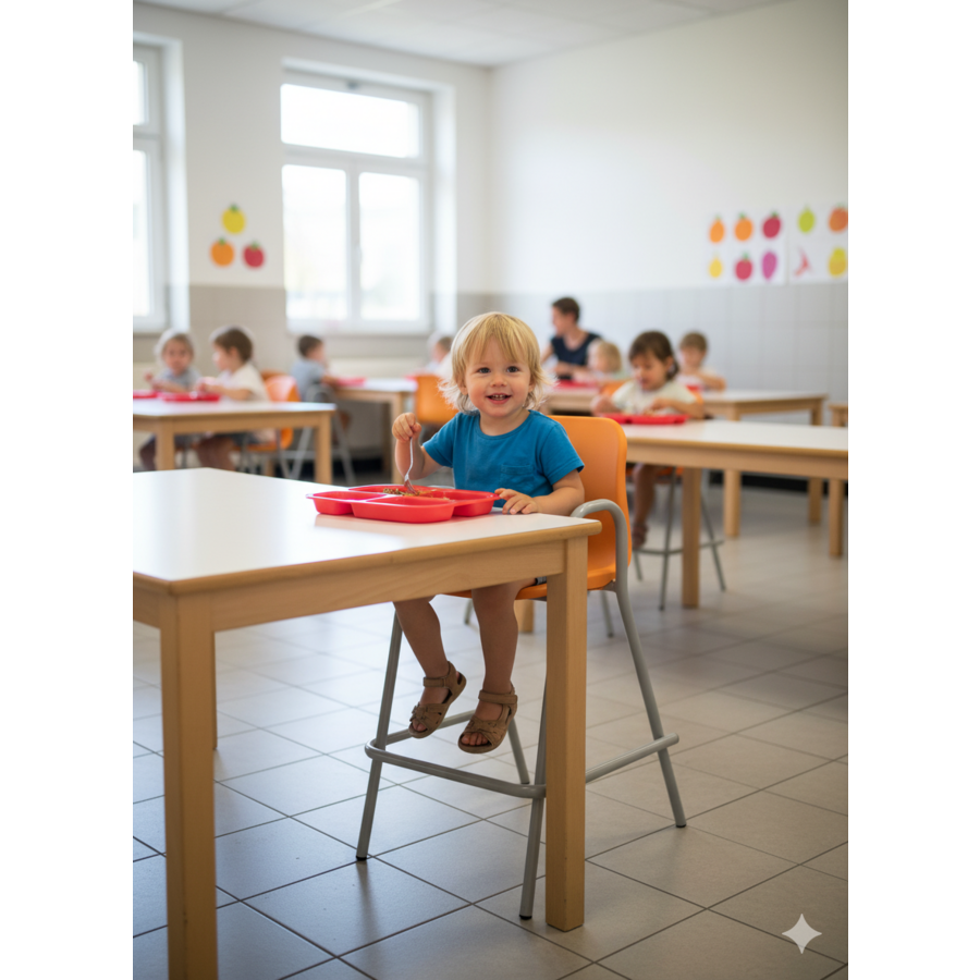 Découvrez la chaise scolaire haute Lise, idéale pour les salles de classe, offrant confort et adaptabilité aux tables standard.