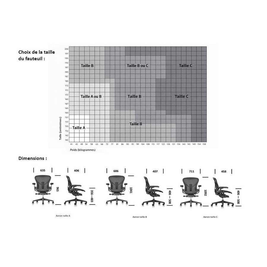 Fauteuil Aeron graphite Herman MILLER avec accoudoirs multi-positions