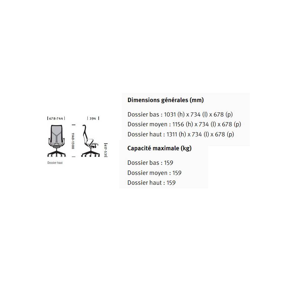 Fauteuil de travail Cosm haut dossier glacier de la marque Herman MILLER.