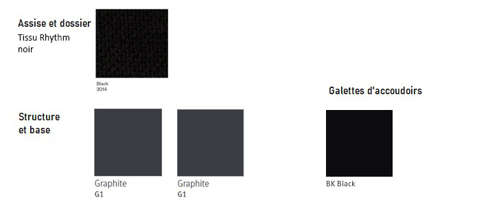 - structure polymère graphite revêtue d'un tissu Rhythm noir sur l'assise et le dossier,