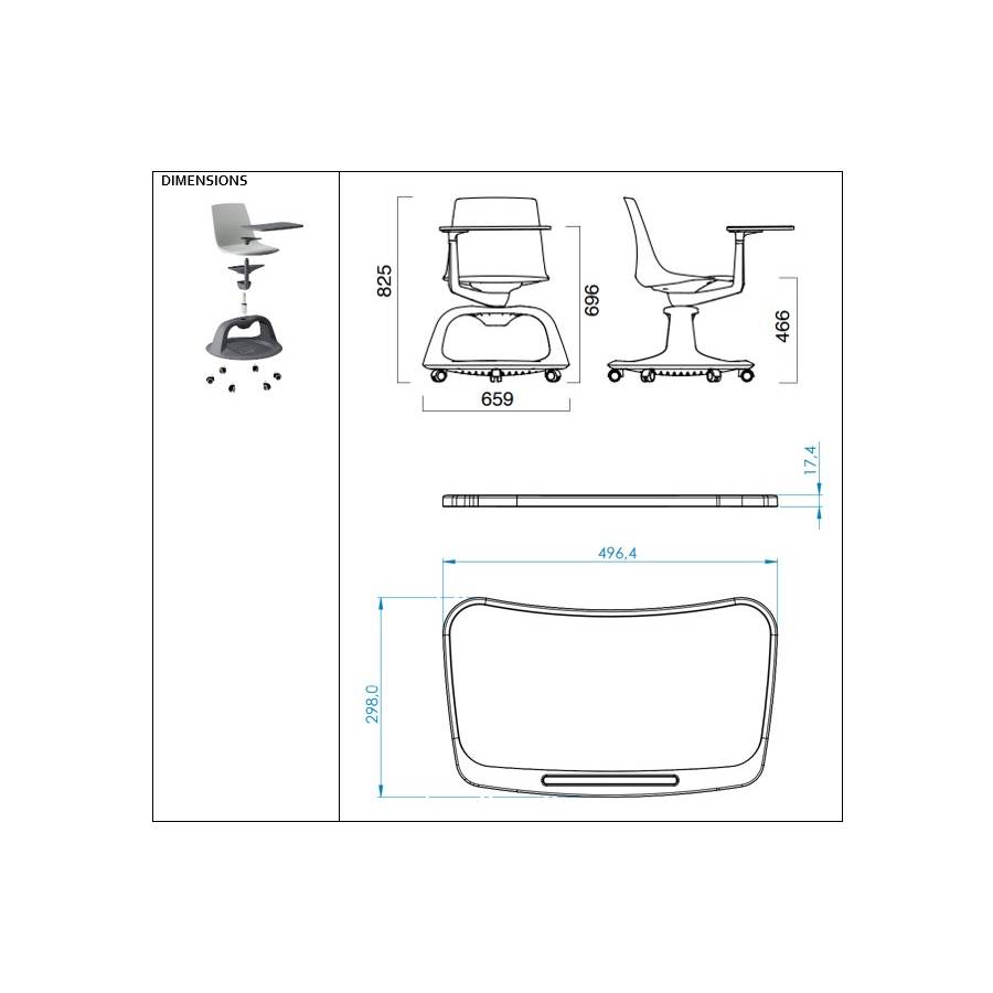 Découvrez cette chaise scolaire pratique et polyvalente, équipée d'une tablette repose-cahier pivotante, d'un panier intégré pour le cartable et de roulettes pour une mobilité optimale ! Conçu pour les environnements scolaires, ce siège offre un confort et une fonctionnalité inégalés. Fabriqué en polypropylène chargé de fibre de verre, il est robuste et disponible en 7 coloris afin de s'adapter à chaque décor. Le piètement basket à 6 roulettes en nylon permet une grande maniabilité, facilitant les déplacements dans les salles de classe.