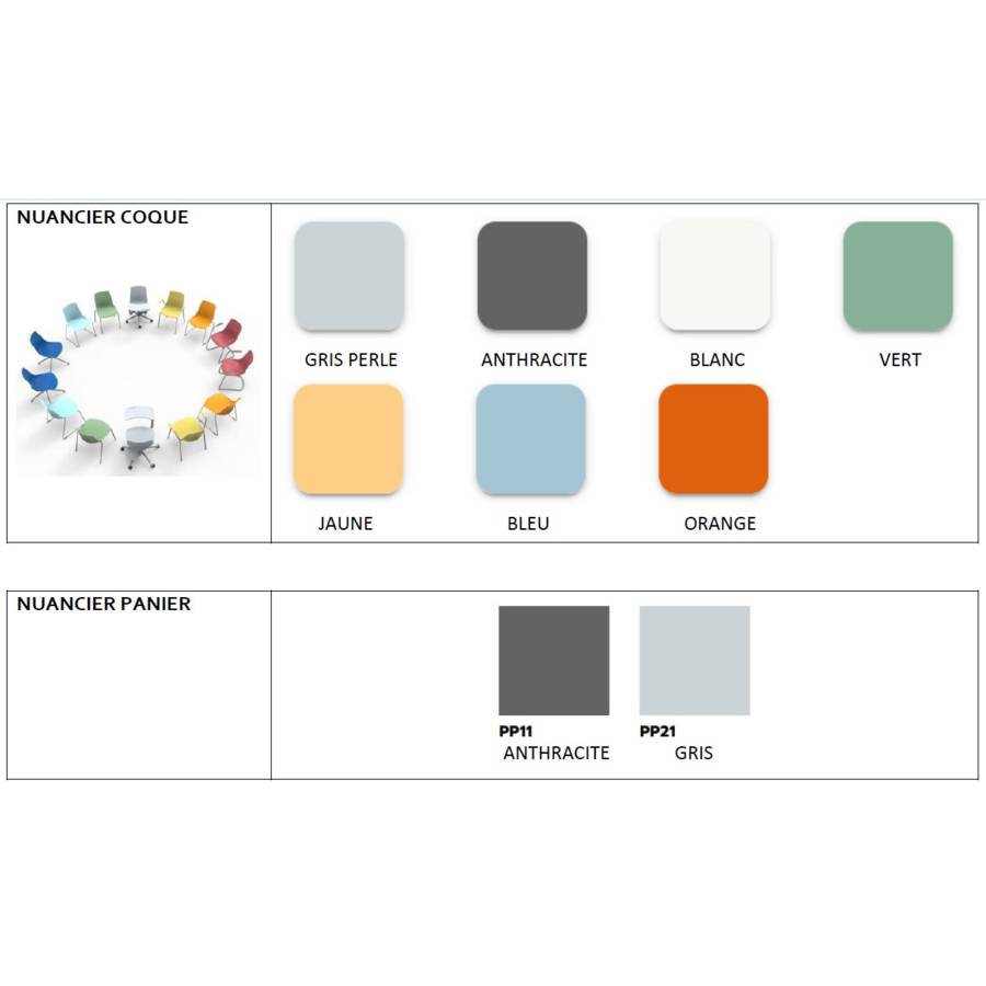 - Roulettes multidirectionnelles – Piètement "basket" à 6 roulettes en nylon, offrant une grande mobilité.