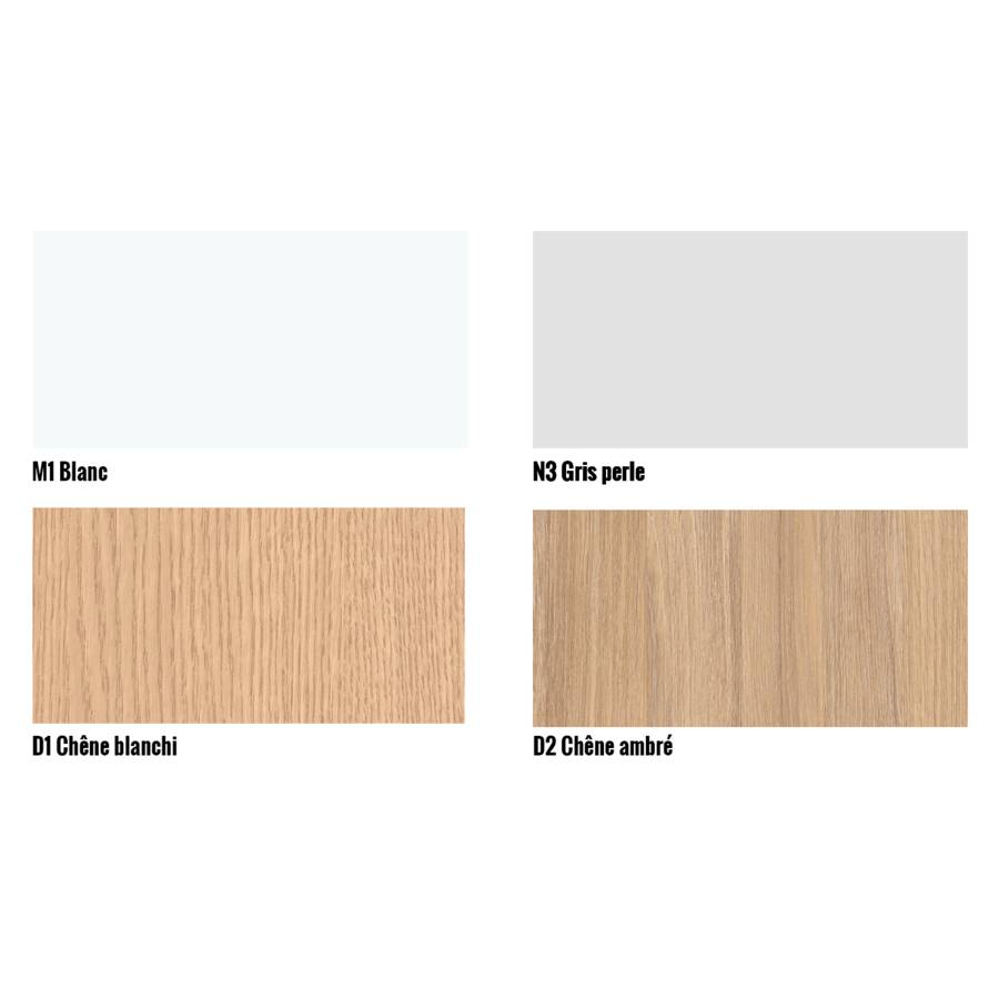 - Plateau personnalisable – Plateau en mélaminé de 25 mm, disponible en plusieurs coloris, avec option de stratifié sur devis.