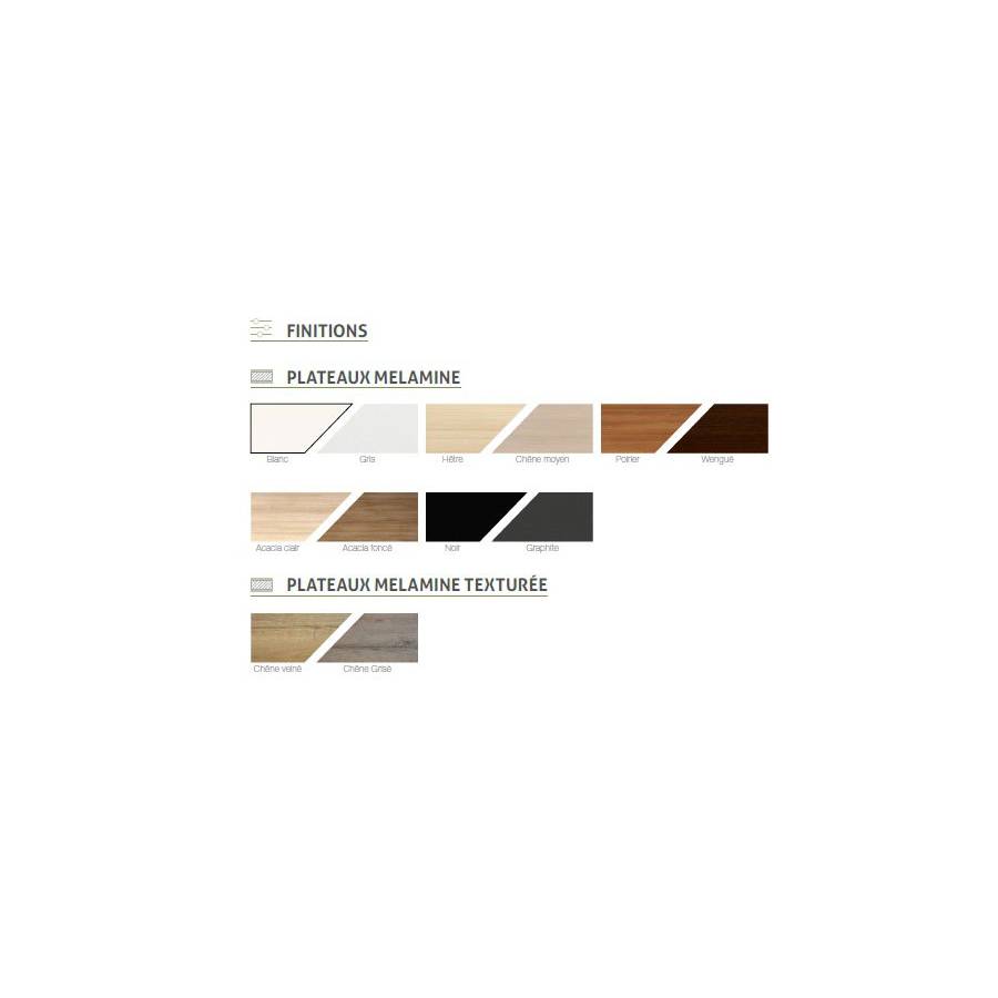 - Plateau résistant – Épaisseur de 25 mm, en finition mélaminée.