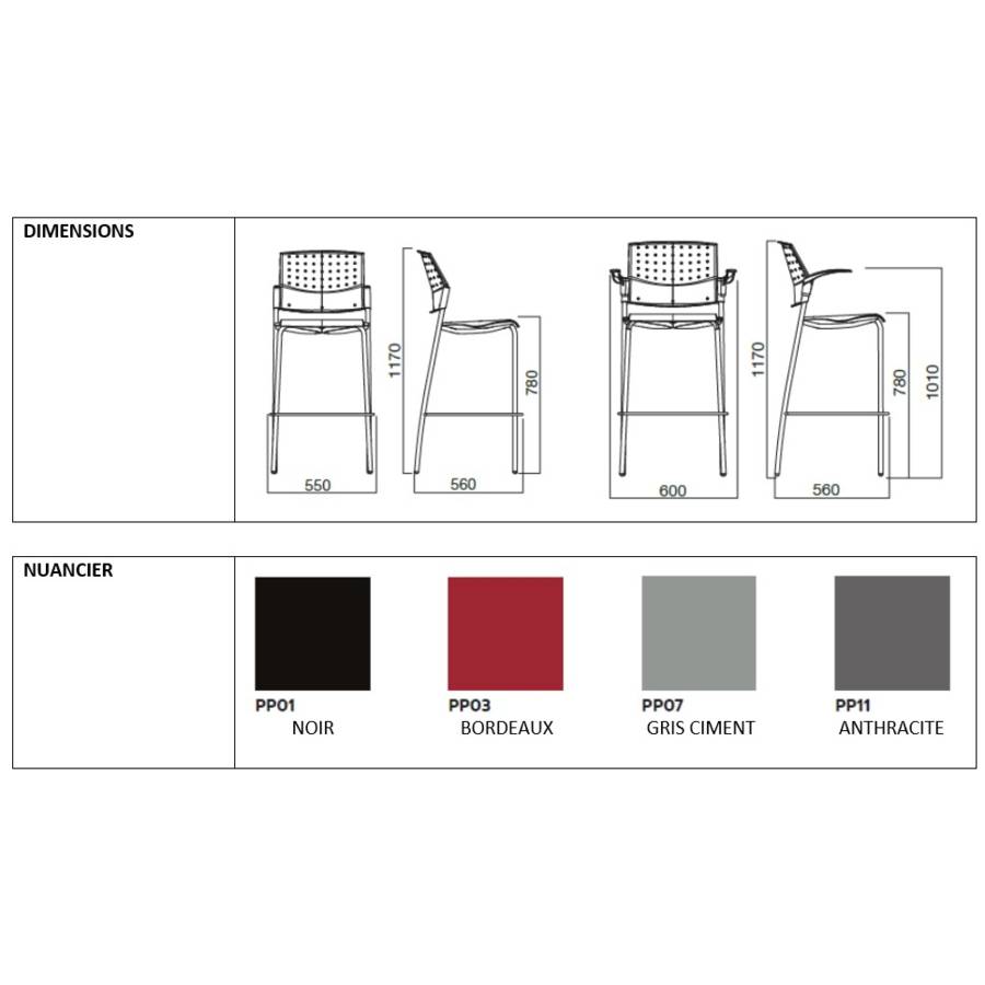 - Assise confortable – Dossier en polypropylène pour un confort optimal
