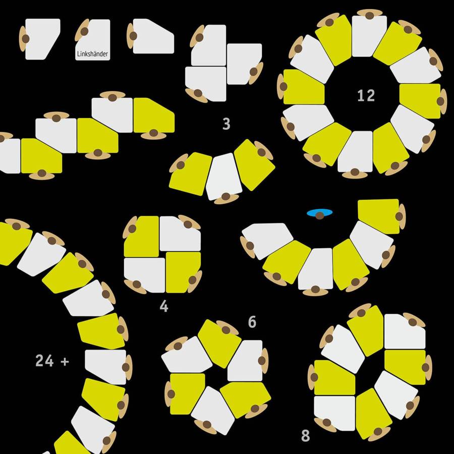 Configuration multiple : combinaisons de tables adaptées à l’espace, aux activités, ou aux groupes.