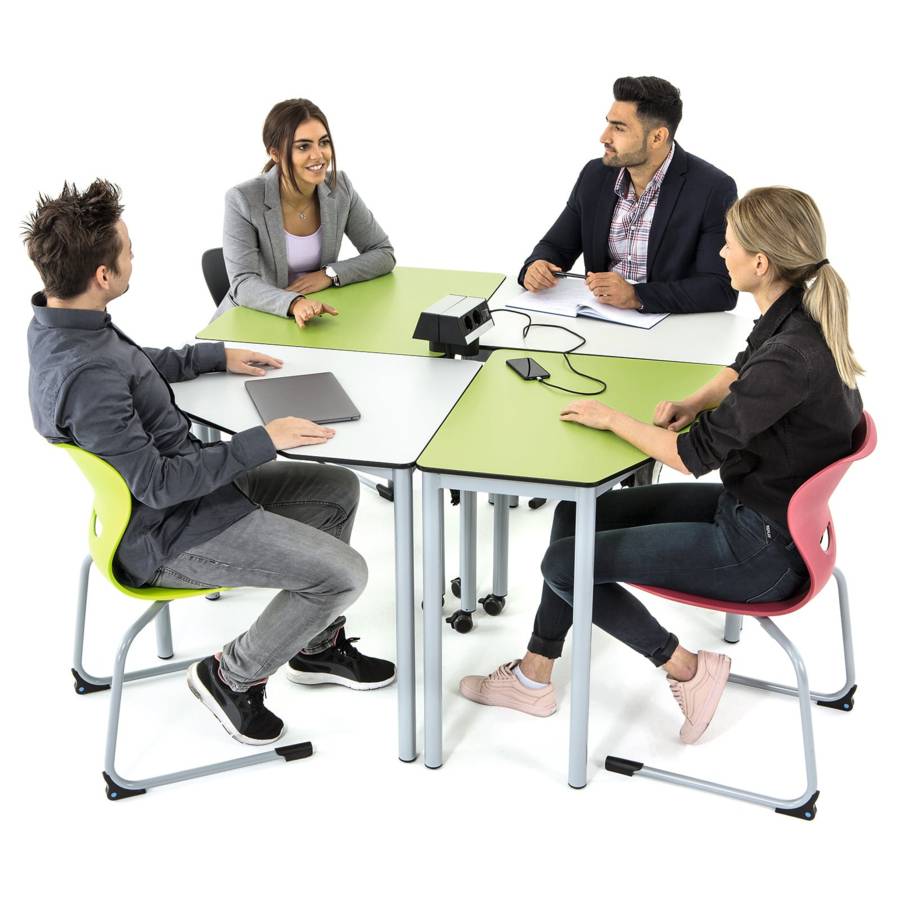 Classe flexible, réunion, formation, espaces collaboratifs ; la table s’adapte à divers usages pédagogiques et professionnels. -