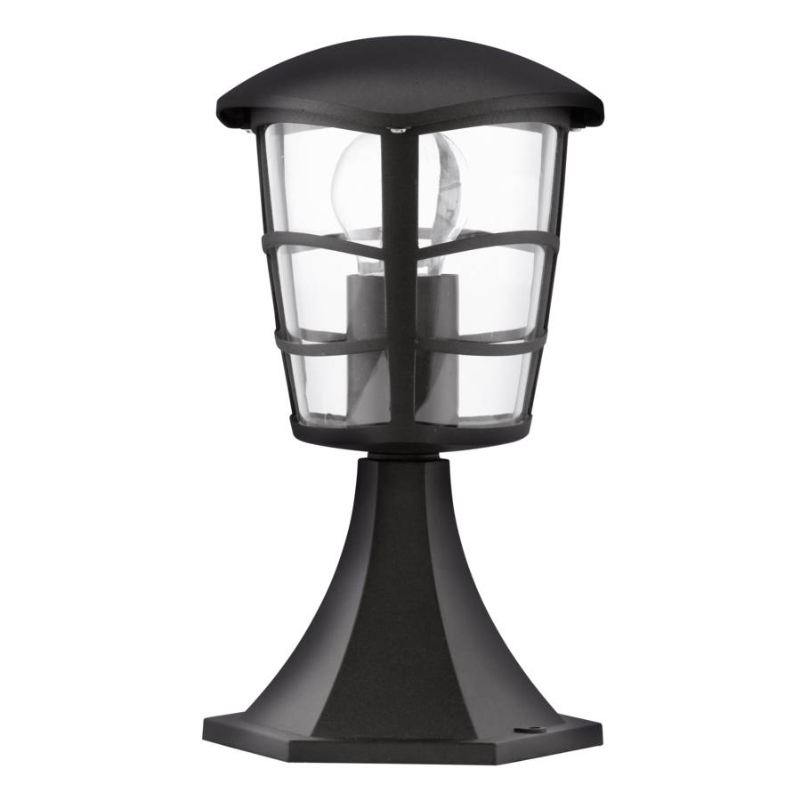 La borne lumineuse ALORIA au design moderne de lanterne se compose d'un corps en fonte d'aluminium noire et de vitres en plastique transparent qui permettent de voir directement l'ampoule. La borne lumineuse est protégée contre les éclaboussures (IP44) et peut donc être utilisée sans crainte à l'extérieur. Son style intemporel complètera habilement votre espace extérieur. L'ampoule à filament représentée n'est pas fournie. Le luminaire extérieur est compatible avec n'importe quelle ampoule E27.