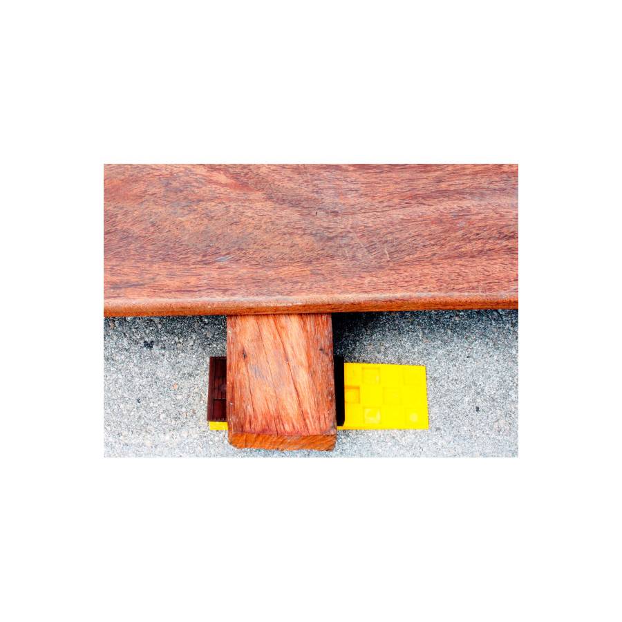 Système de cales crantées pour la pose de planchers et terrasses en bois.