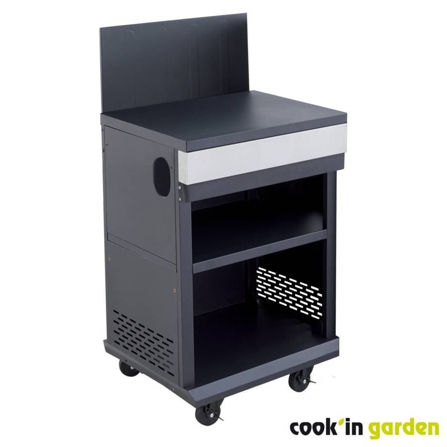 Surface de travail 60 x 45,5 cm avec crédence métal - Grande capacité de rangement avec 2 étagères. - Poids 14,8 kg.- Associé au barbecue, il est possible d'ajouter cette desserte et 1 autre module pour créer une véritable cuisine d'appoint. L'ensemble est ainsi composé de 3 modules dissociables : le barbecue, l'évier et la desserte.
