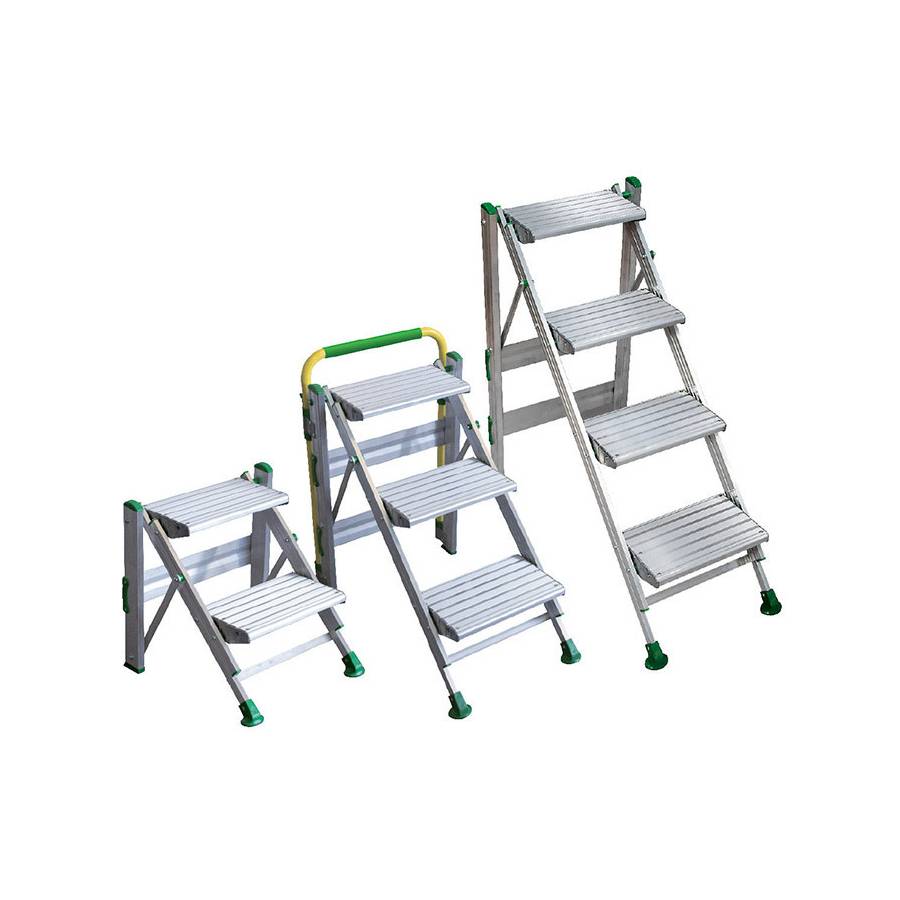Marchepieds professionnels pliable en aluminium - Disponible avec et sans garde-corps - Marches: 37x23cm - 2 marches.