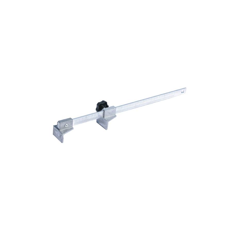 La mesure d'écartement permet la pose simple et rapide des liteaux (pureau) et lattages à écart constant. Réglage en continu de la hauteur. Graduations de 150 à 400 mm.
