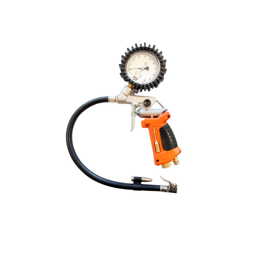 Pression de 0 à 10 bar – avec embout «grosse valve» - 3 embouts de gonflage incorporés dans la poignée.