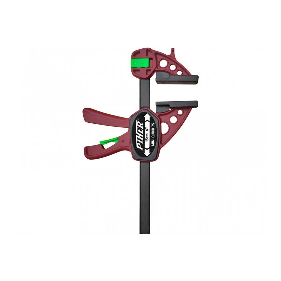 SERRE-JOINT MINI-QUICK - PUISSANCE DE SERRAGE 75 KG. DESSINE POUR TRAVAILLER D'UNE SEULE MAIN POSSIBILITE D'ASSEMBLER OU SEPARER DES PIECES MANCHE ERGONOMIQUE DEBLOCAGE INSTANTANE PAR DETENTE MATERIAU HAUTE RESISTANCE