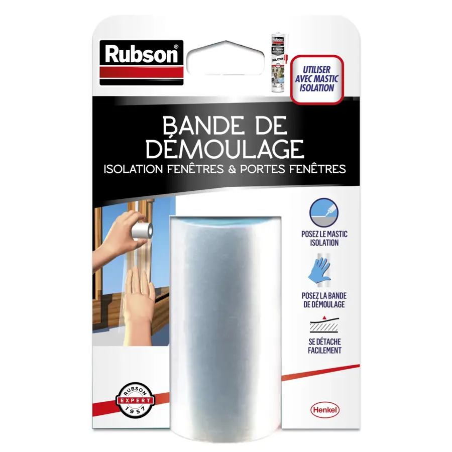 La Bande de démoulage Rubson est une bande transparente de 25 m de long - Elle est un complément indispensable au Mastic Isolation pour réaliser facilement le moulage des joints d'isolation de portes et fenêtres, sans risquer de les coller à leur battant - Rouleau de 25m.