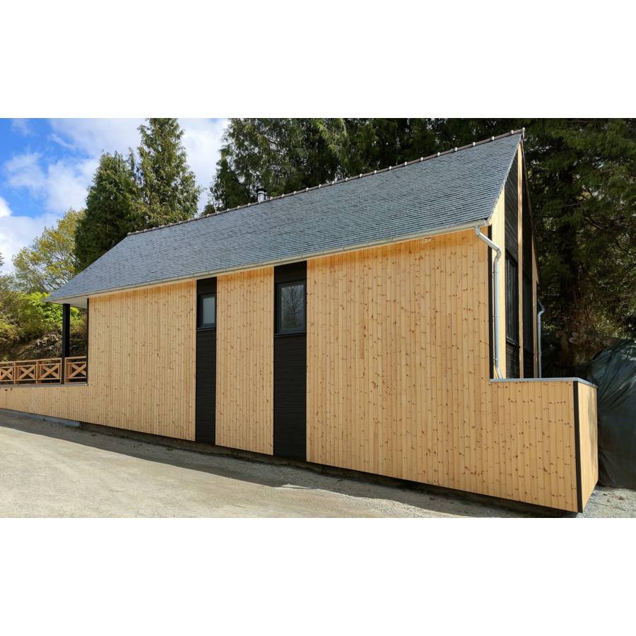 Pin Rouge du Nord 99 % de duramen (bois de coeur, partie de l'arbre sans tissu vivant et donc imputrescible). Classe 3.2. Surface rabotée brossée. Rainé en bout (prévoir environ 5 cm en moins sur longueurs réelles). - Longue durée de vie, ne nécessitant pas de traitement car naturellement résistant aux attaques d'insectes et de champignons. - Pose à emboitement horizontale ou verticale. - Origine Scandinavie. - Produit Eco-responsable. - Entraxe entre appuis : 60 cm. - Conforme DTU 41.2. - Botte de 5 lames.