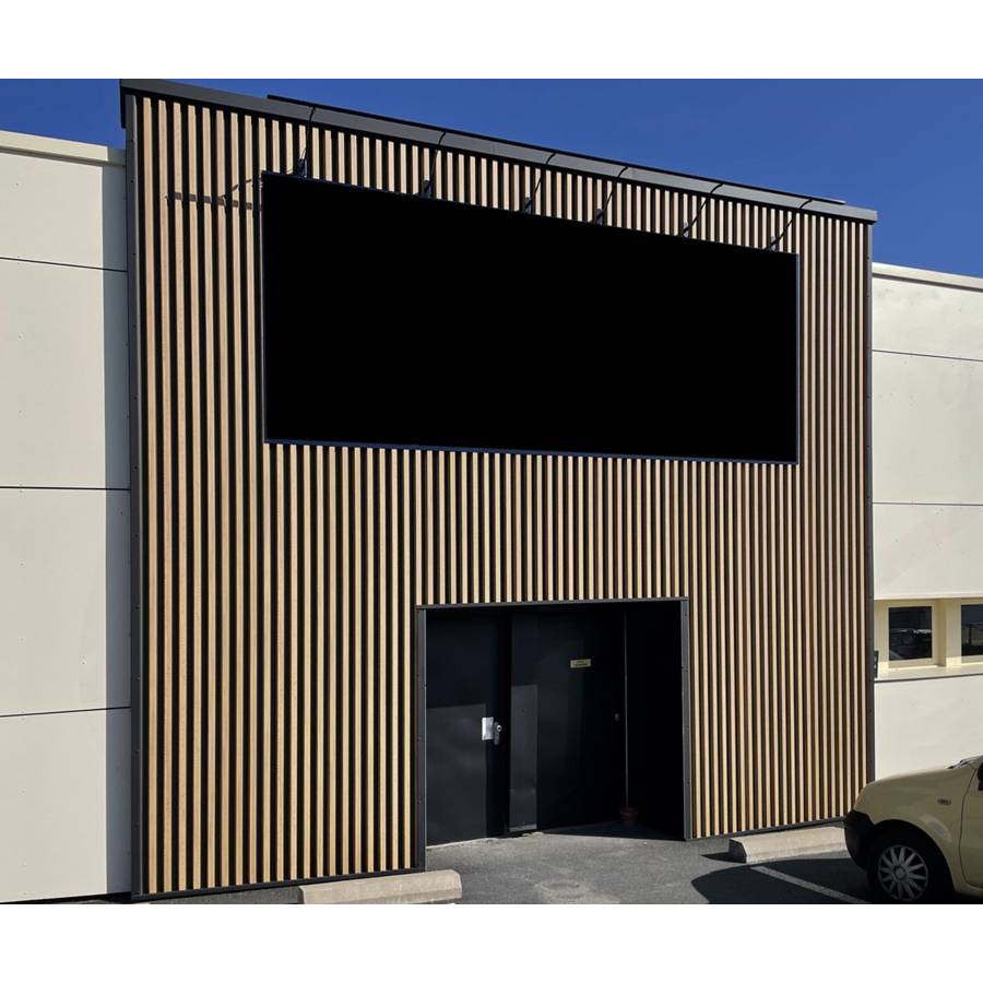 Panneau acier galvanisé laqué. Effet claire-voie tasseaux 37 x 37 mm. Classement Q4 MO. - Pose horizontale ou verticale avec fixations apparentes. - Entraxe entre appuis : 60 cm. - Epaisseur d'acier : 0,63 mm.