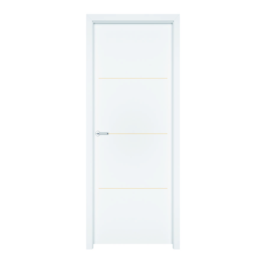 Bloc-porte gravé à chant droit, épaisseur 40 mm, ferrage 3 paumelles 110 x 55 mm. Serrure à pêne dormant demi-tour axe à 40 mm. Poignée vendue séparément. - Huisserie : Néolys en MDF hydrofuge enrobé blanc, joint de confort acoustique posé. - Finition : prépeint avec gravure brute sur les 2 faces de la porte. - Pose : traditionnelle. - Dimensions totales du bloc-porte à chant droit : Hauteur : + 4,1 cm Largeur : + 7,2 cm.