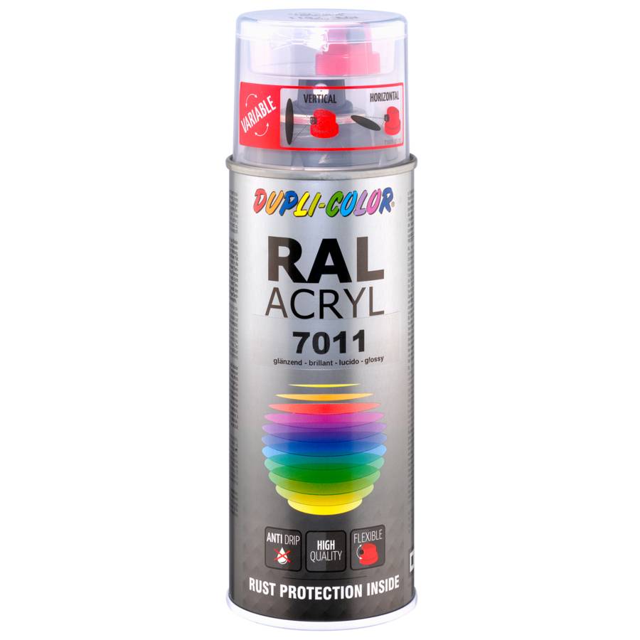 Duplicolor - Bombe de peinture RAL 7011 Gris fer - Brillant - 400mL - Peinture haut de gamme de qualité professionnelle - Peinture acrylique anticorrosion - Dôme de couleur serti sur l aérosol - Sec hors poussière en 5 minutes - 180 teintes RAL disponibles - Rendement maximum 1,75m2 - Résistance à la chaleur juqu à 110°C - Excellente adhérence sur le bois, le métal, l'aluminium, le verre, la pierre et les matières synthétiques - Produit utilisable pendant 10 ans