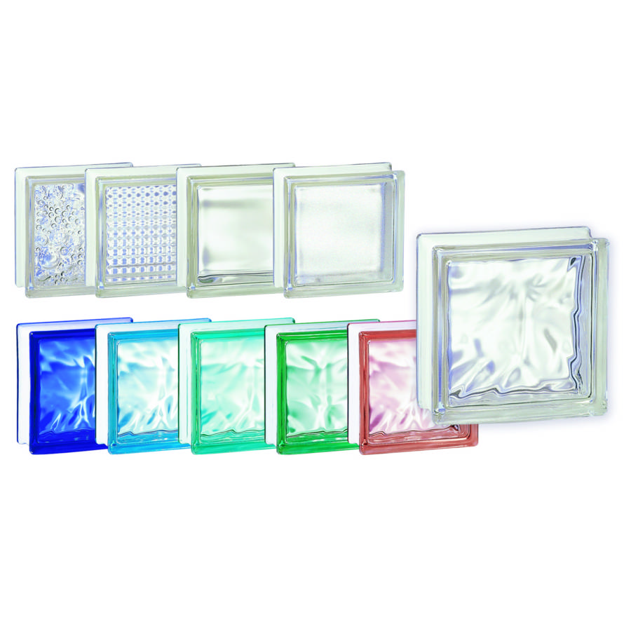 Briques de verre pour utilisation verticale, intérieure ou extérieure, pour rythmer le passage lumineux de manière architecturale et décorative. Conforme norme EN 1051-1.