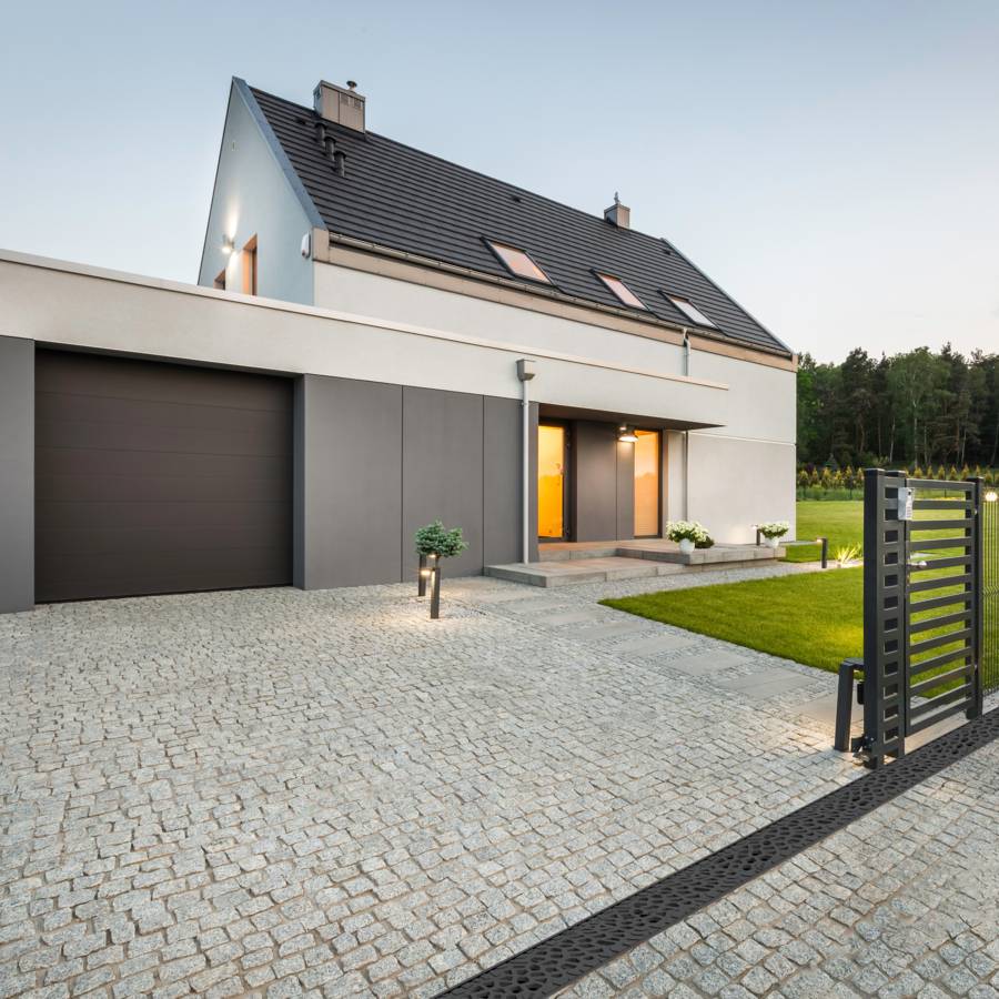 Caniveau de drainage en béton polymère linéaire avec grille design en fonte noir standard, pour jardins, terrasses et voies d'accès. - Adapté aux applications domestiques : classe B125