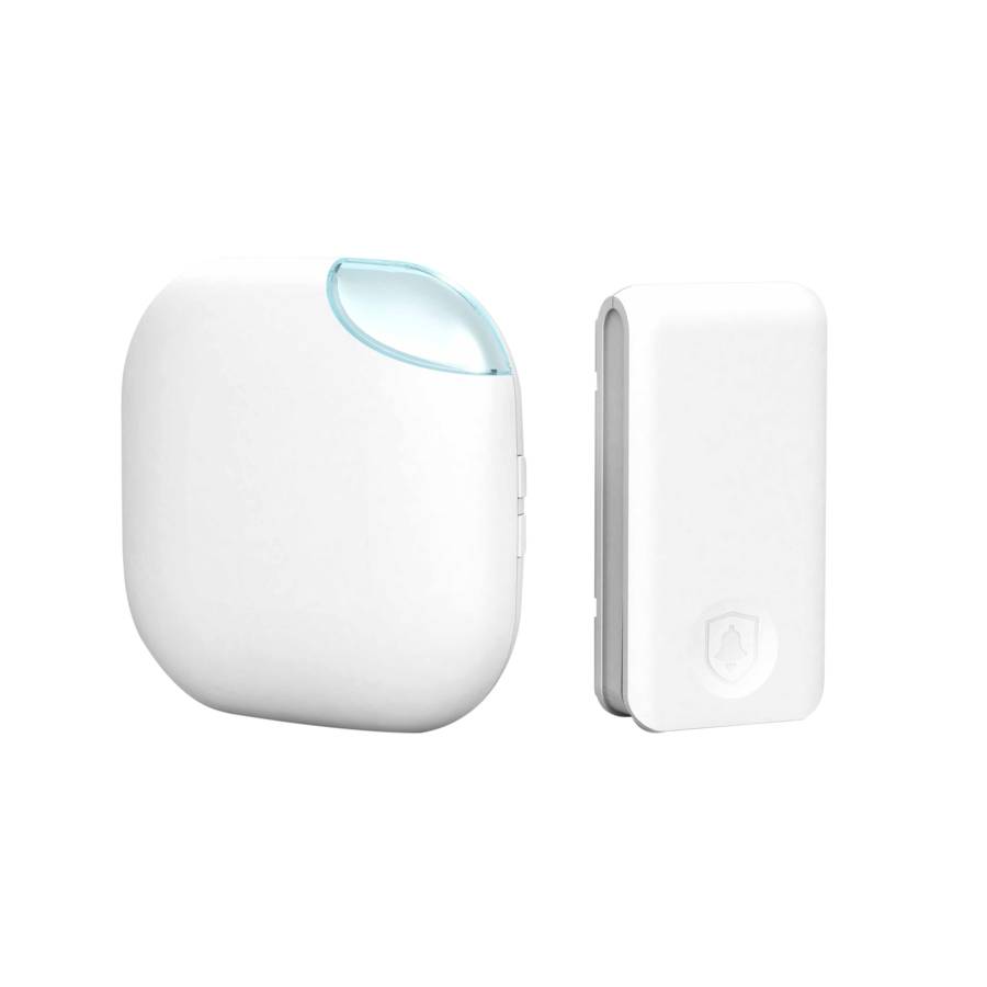 Carillon sans fils avec 25 sonneries aux choix- La distance maxi entre le bouton et le carillon doit être de 110 m. - Bouton auto-alimenté par un système de dynamo. - Alimentation avec une prise secteur AC100-230V, sans pile et sans fil. Indice de protection IP44. - Installation facile.