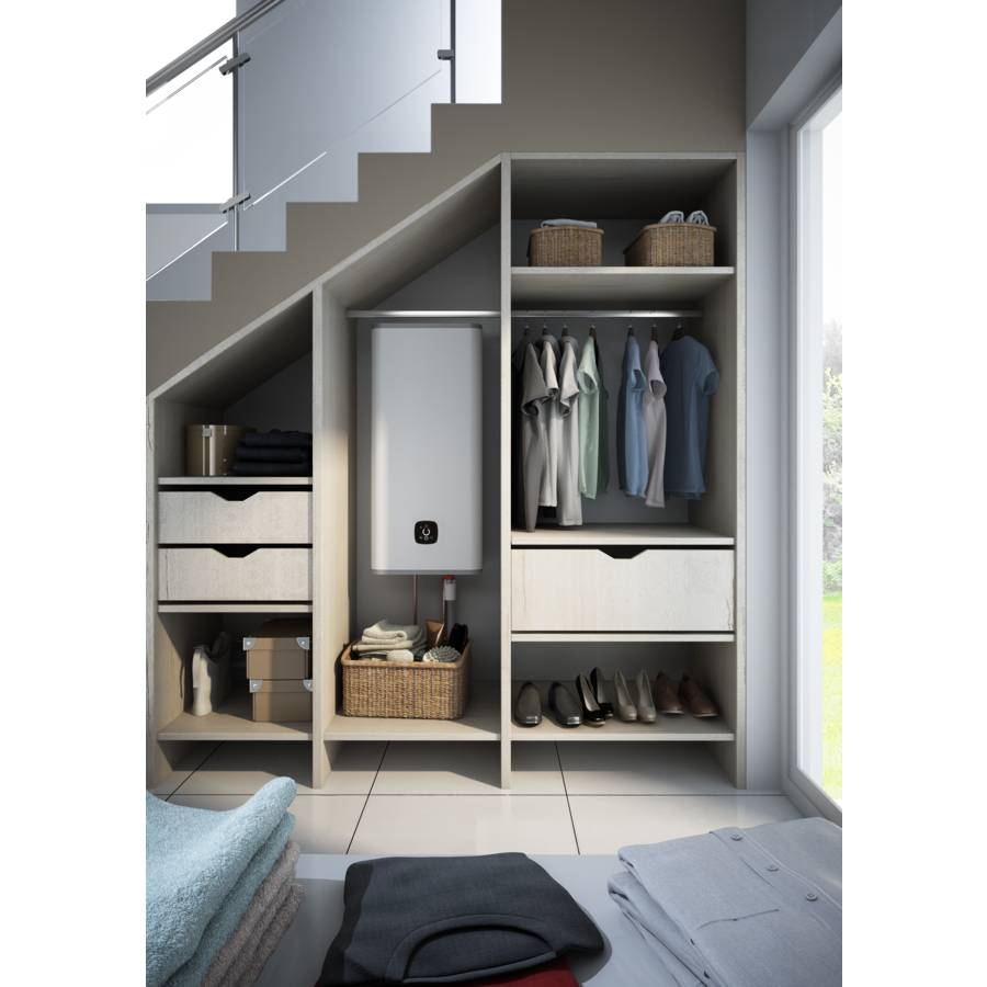Les + : - ultra compact : moins de 30 cm de profondeur (sans étriers) - installation possible en vertical ou en horizontal - autonome. Et aussi : - interface tactile- mode absence - ajustement de la production d'eau chaude en fonction de votre rythme de vie - protection anticalcaire. Le choix malin pour les espaces de vie réduits. Idéal en rénovation. Pilotage à distance via smartphone ou tablette grâce à l'application. Cozytouch. Remplacement d'un chauffe-eau principal 100 L ou 200 L par : - Guelma Wi-Fi 65 L (permet jusqu'à 3 douches d'affilée) - Guelma Wi-Fi 80 L (permet jusqu'à 4 douches d'affilée ou 1 bain). Classe énergétique B.