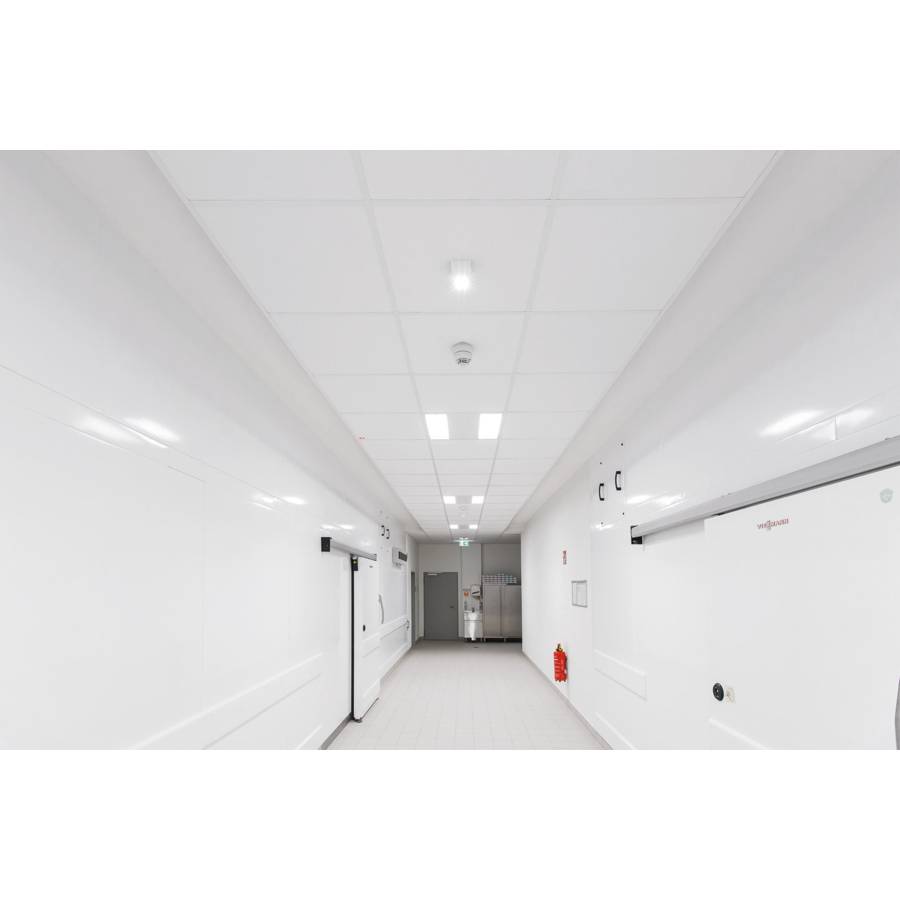 Dalle de plafond blanche en laine de roche très légère offrant une surface moderne et épurée. Bord droit. - Excellente absorption acoustique (1,00 αw) - Atténuation latérale Dn,f,w = 25 dB - Excellente réflexion de la lumière (88%) - Résistance à l'humidité 100% - ISO 4 salle blanche. - 12 dalles par colis soit 4,32M².