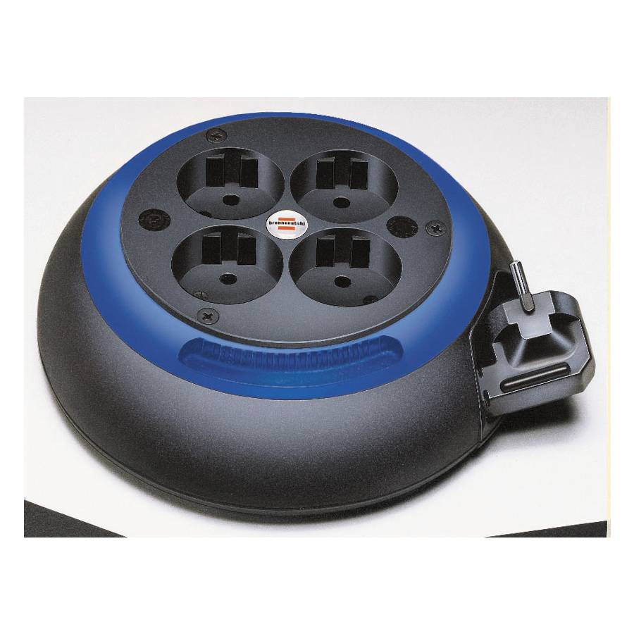 ENROULEUR DE CABLE DESIGN-BOX CL-S / PETIT ENROULEUR AVEC 4 PRISES DE COURANT ELECTRIQUE (3M H05VV-F 3G1,0, HAUTEUR 6CM, UTILISATION EN INTERIEUR, FABRIQUE EN FRANCE) NOIR/BLEU