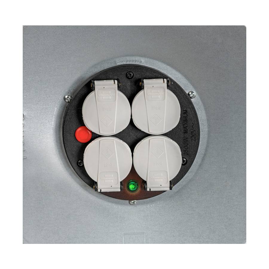 Enrouleur Silver XL - Protection IP44 - 4 prises 2P+T 16A/230V à clapets - 1 fiche 2P+T 16A/230V - Poignée de transport ergonomique avec guide-câble - Bouton tournant avec logostar - Flasques en acier galvanisé - Moyeu en matière isolante renforcé - Puissance maximum 1000W câble non déroulé et 3500W câble déroulé - Disjoncteur thermique - Protections enfants.