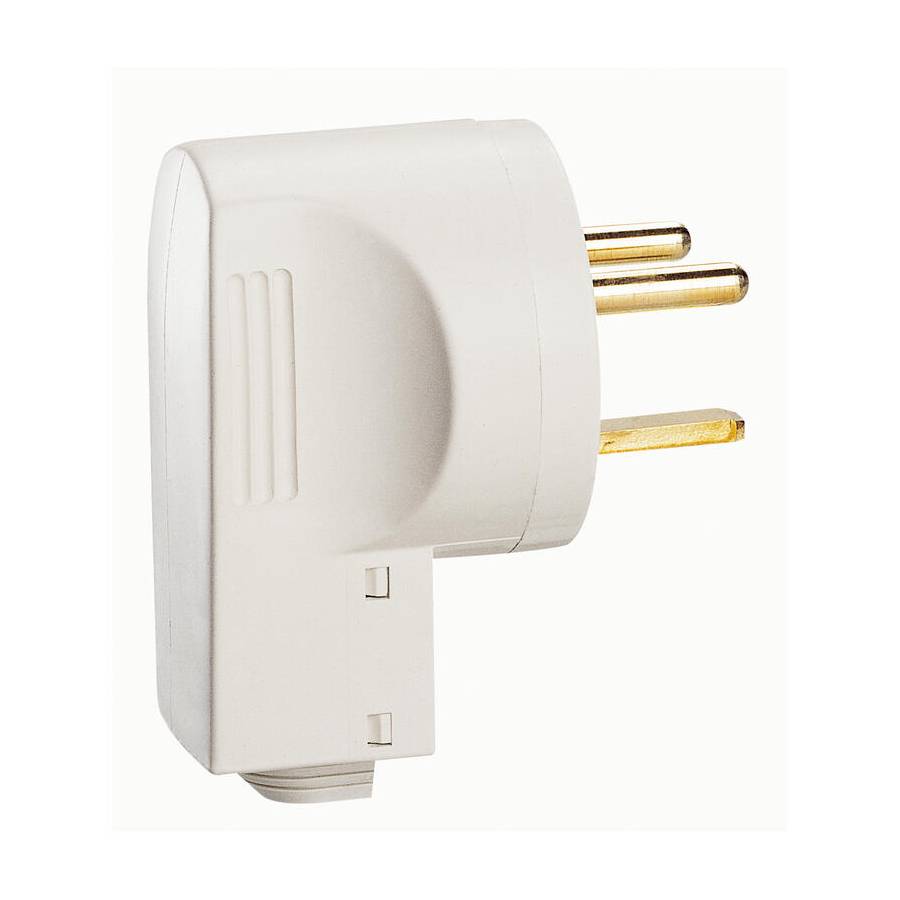 Fiche mâle 2P+T à sortie latérale par embout avec serre-câbles blanc 32A - Gedimat