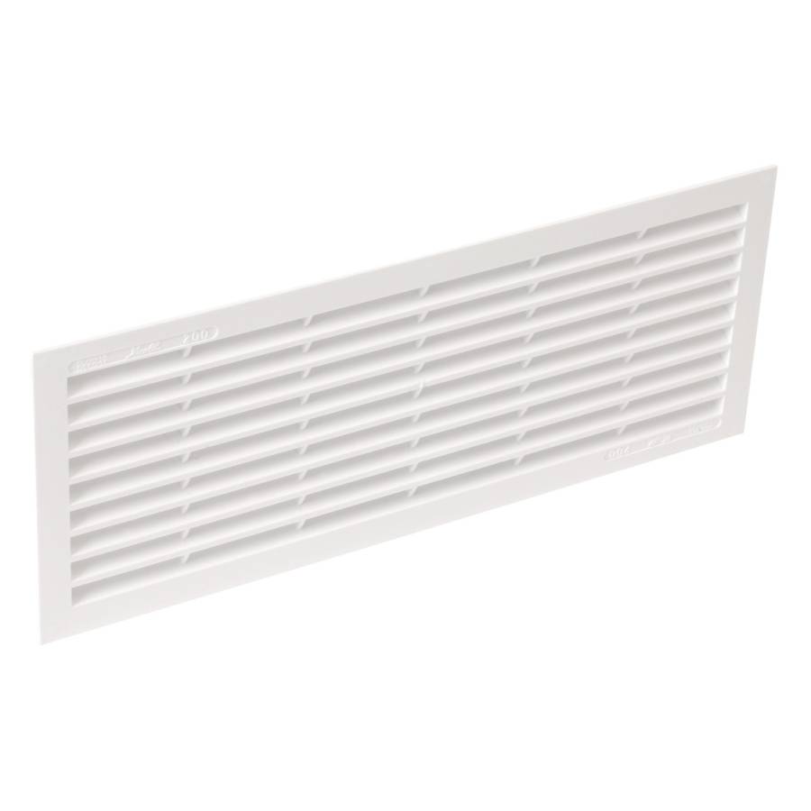 Grille d'aération rectangulaire 338 x 132 mm, à sceller ou à coller/visser, en pvc blanc, avec moustiquaire, dimension de la fixation 314 x 108 mm, section de passage d'air 200 cm2, pose intérieure ou extérieure, résistant aux uv - Gedimat