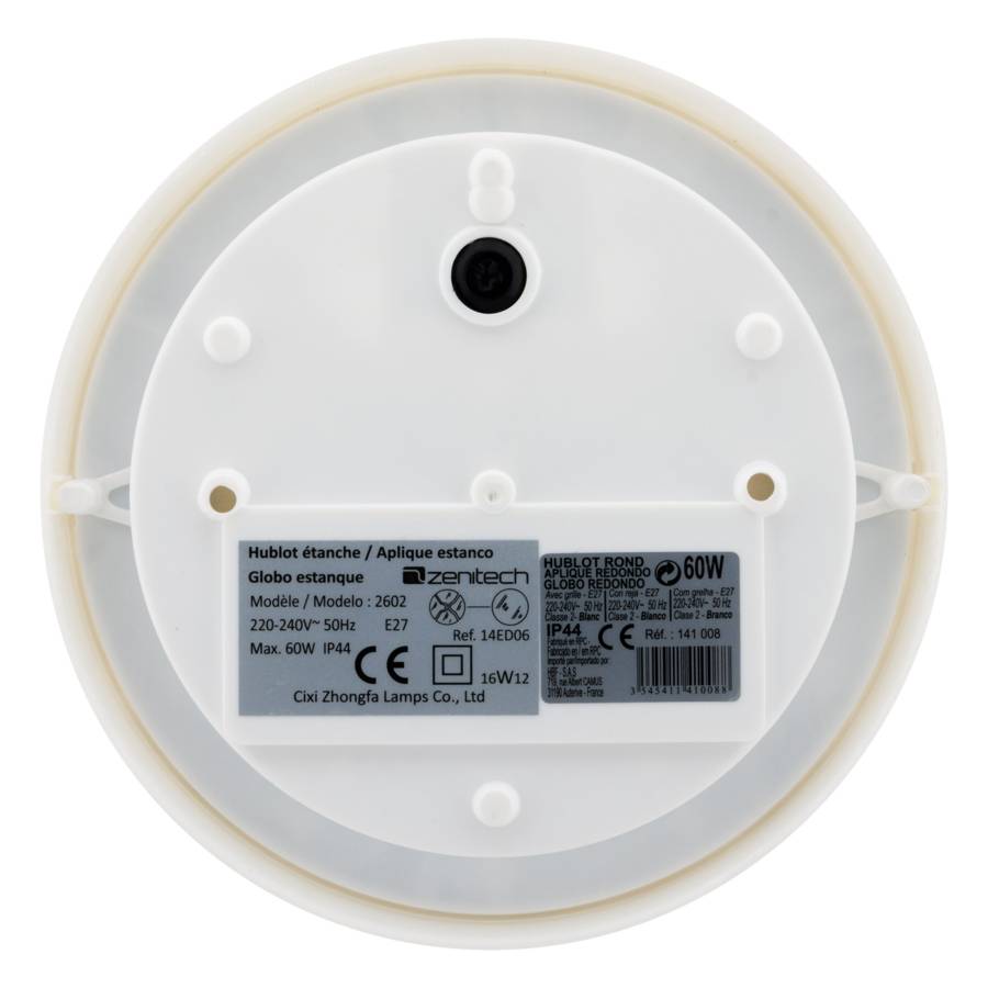 Pour ampoule 100W maxi. Etanchéité IP44.