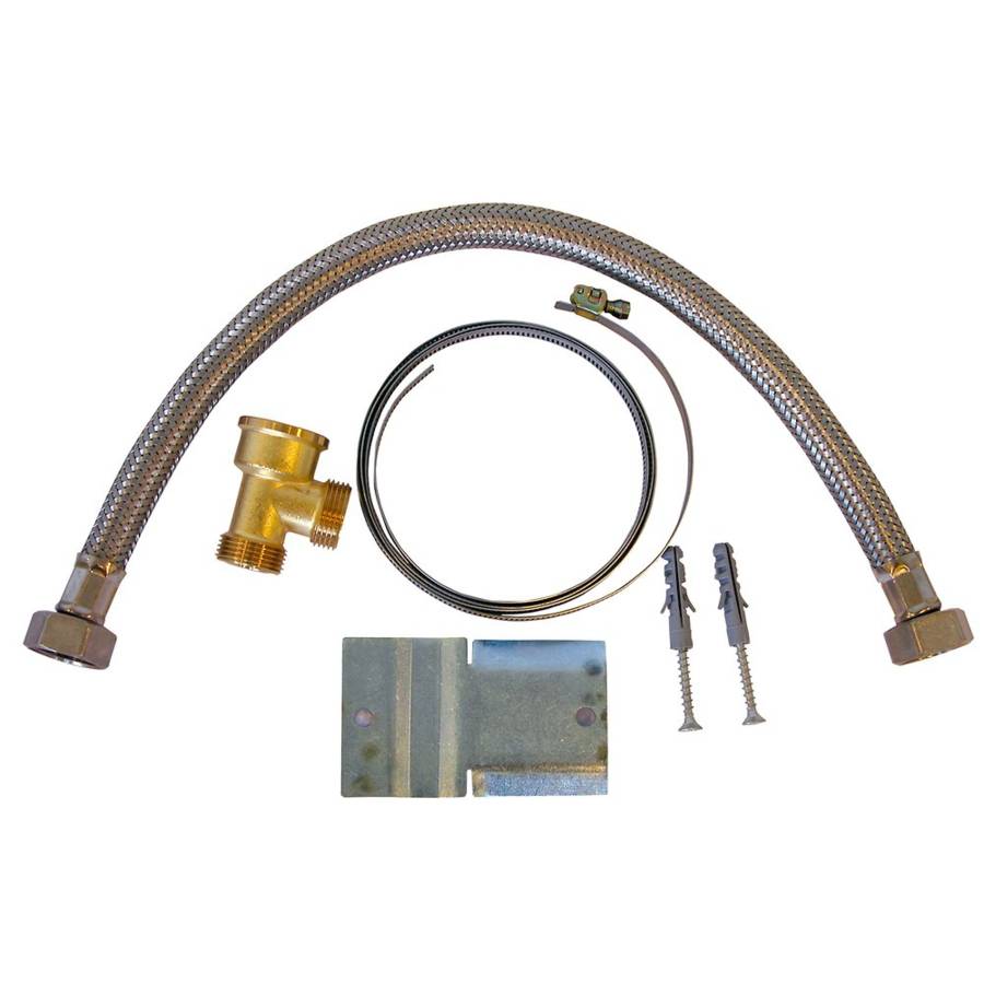 Kit de montage pour vase d'expansion sanitaire composé d'un collier de serrage, 1 support mural, 1 flexible de 50 cm et de 1 té spécial de dérivation.
