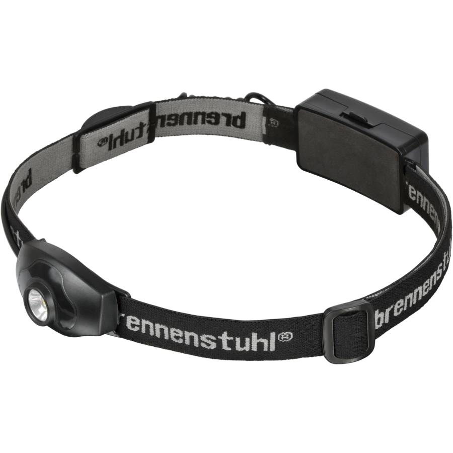 Lampe frontale LuxPremium LED KL100 IP44 - fonctions 100%, 20% et SOS - angle d‘inclinaison réglable - interrupteur et sélecteur de fonctions - large bande flexible fixe réglable de maintien - 100 lumens - portée 40m - alimentation par 2 piles AA - autonomie 10 heures.