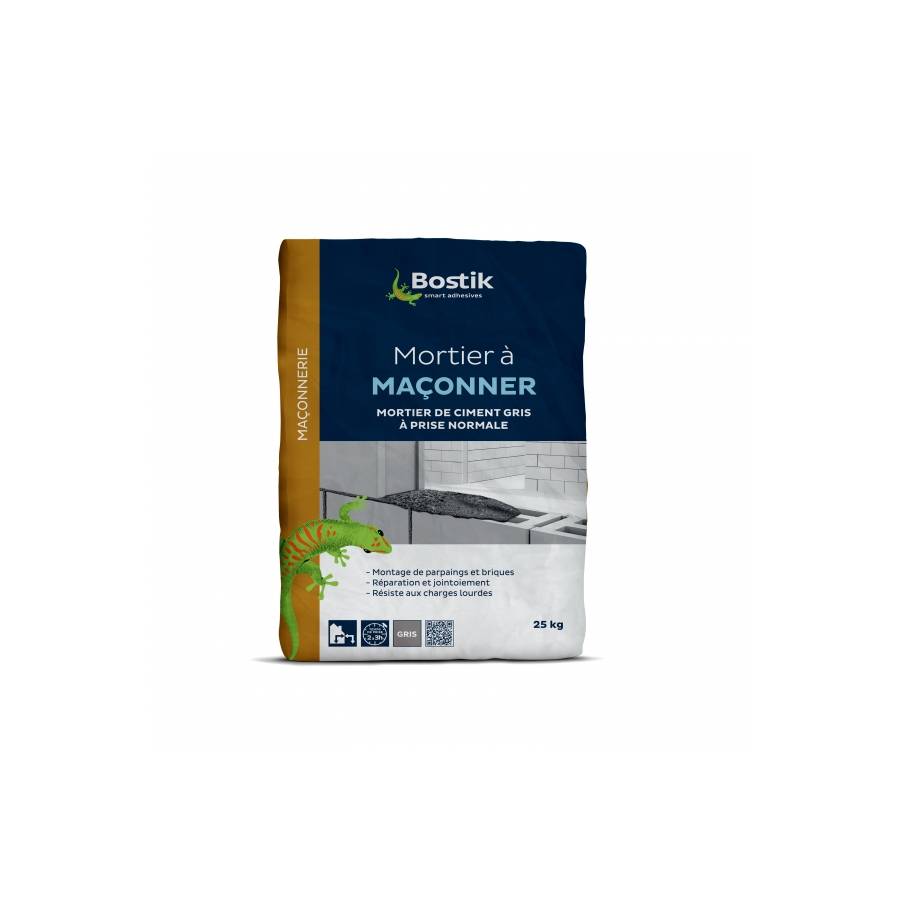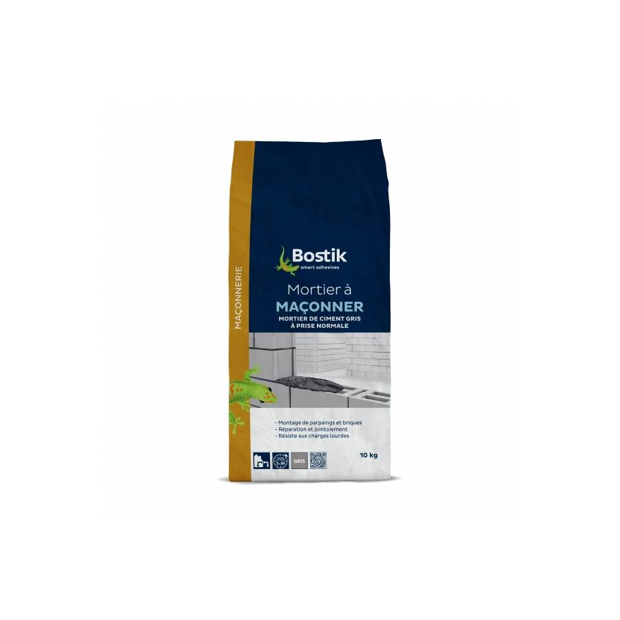 Le Mortier à maçonner de Bostik est un mortier de montage. Ce mortier permet le montage de parpaings et de briques ainsi que la réalisation de chapes de maçonnerie. Il permet également de faire des réparations et des jointement. Sac papier de 10kg.