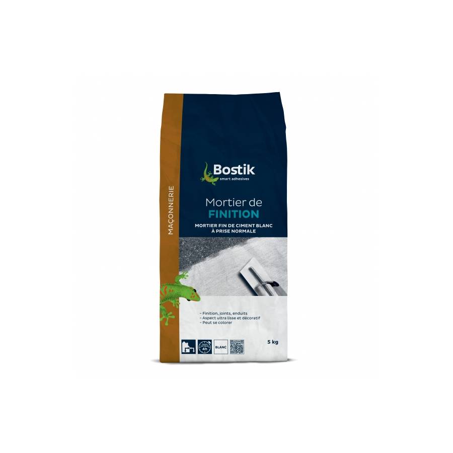 Le Mortier de finition de Bostik est un ciment et mortier de finition pour sol et mur en intérieur comme en extérieur. Il convient sur la plupart des supports comme le béton, le mortier et la pierre. Sa formule à l'aspect ultra lisse et décoratif vous garantit des finitions parfaites. Blanc. Sac papier de 5kg.
