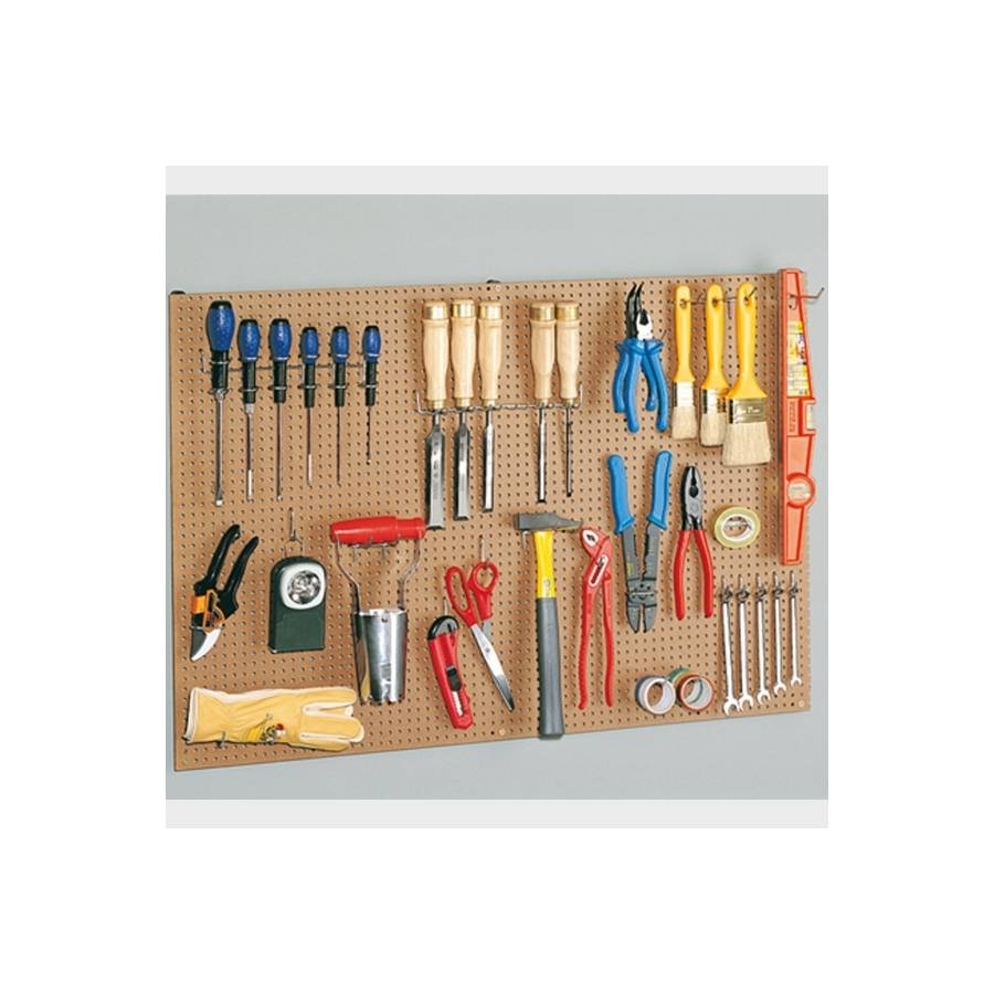 Permet de maximiser l'espace de stockage disponible en offrant des options de rangement verticales pour les outils, équipements, fournitures de bureau, accessoires de cuisine… B260V est en isorel épaisseur 3 mm. Perçage avec un pas de 25 mm d'axe en axe. Perforation de 4,8 mm. Entraxe des trous des plaques : 25 mm. Dimension panneau : 60 x 90 cm.