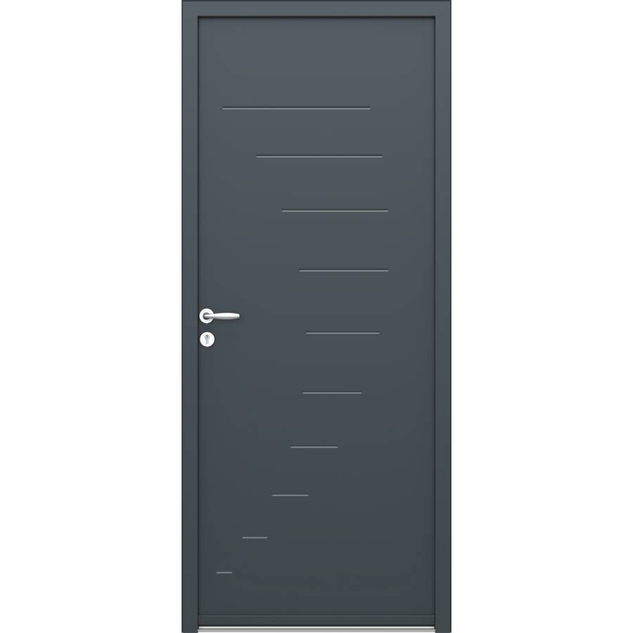 Porte d'entrée acier TRAM gris dormant 60 mm avec tapées pour isolation 140 mm - 215 x 90 cm - Gedimat