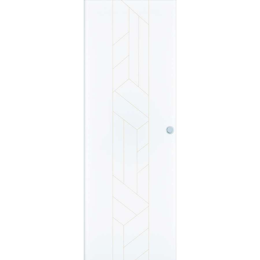 Porte seule à recouvrement, ouvrant à âme alvéolaire épaisseur 40 mm - Finition prépeinte avec gravure brute sur les 2 faces de la porte - Porte usinée compatible avec nos systèmes coulissants en applique ou à galandage - Poignée vendue séparément.