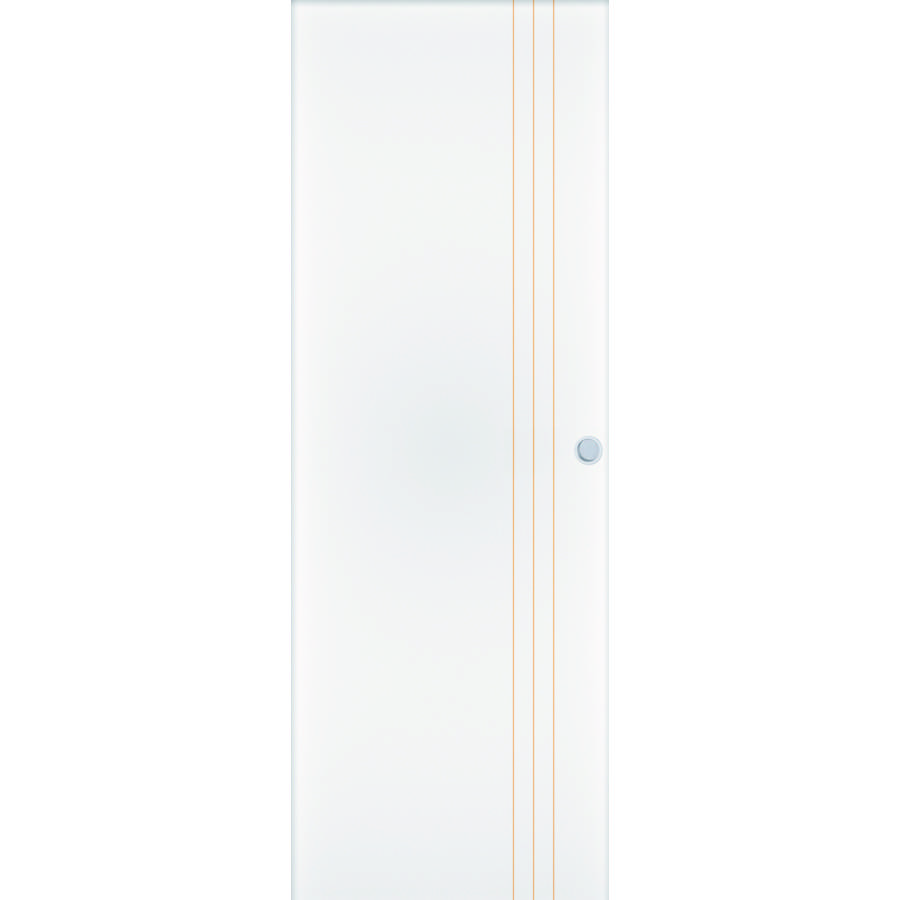 Porte seule à recouvrement, ouvrant à âme alvéolaire épaisseur 40 mm - Finition prépeinte avec gravure brute sur les 2 faces de la porte - Porte usinée compatible avec nos systèmes coulissants en applique ou à galandage - Poignée vendue séparément.