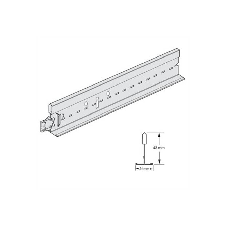 Elément d'ossature métallique qui permet de soutenir des plaques ou des dalles de plafond suspendu. Se fixe aux suspentes ou aux cornières de rive, et reçoit les entretoises perpendiculaires. - Avec lumières tous les 10 mm.