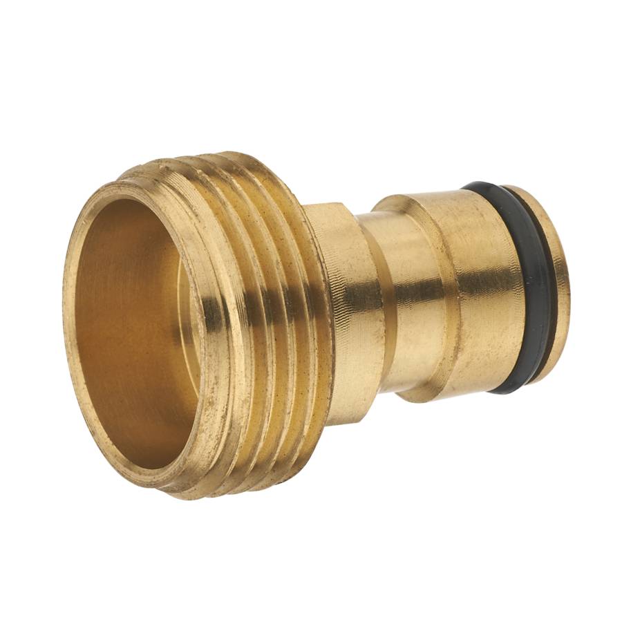 Raccord en laiton, adaptateur mâle 20x27 avec embout automatique mâle. - Se connecte sur un pistolet ou une lance d'arrosage entrée femelle 3/4' (20x27). - Matière première recyclable, très résistante aux UV, aux intempéries et aux conditions climatiques difficiles.