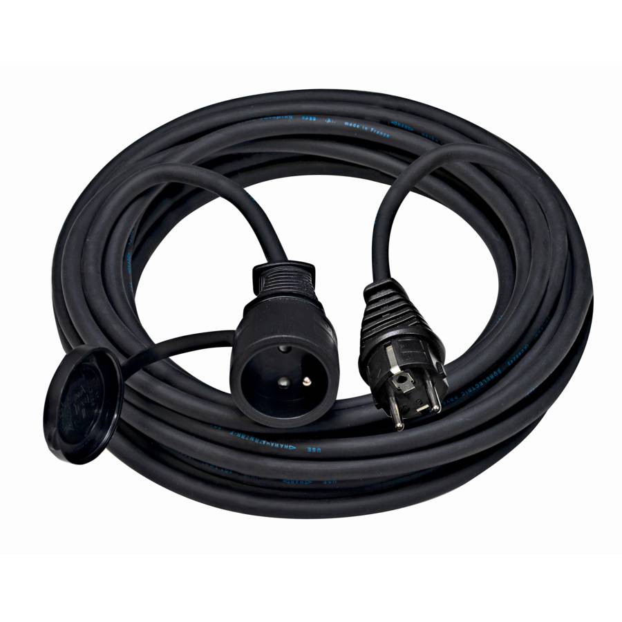 RALLONGE ELECTRIQUE / PROLONGATEUR ELECTRIQUE (10M DE CABLE H07RN-F 3G2,5 NOIR, FICHE DROITE, PRISE DROITE A CLAPET, UTILISATION EN EXTERIEUR)