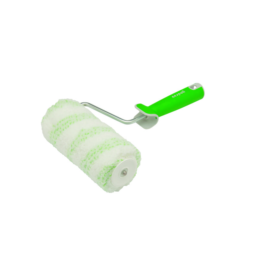 Tissu enduit de Teflon® surface protector-Manche bi-matière-Fil aluminium anodisé diamètre 8 mm-Système ABS-Traitement andi-adhérent spécifique enduit sur le tissu qui permet:- un gain de temps (le rouleau dépose plus de peinture)- un nettoyage plus facile avec moins d'eau