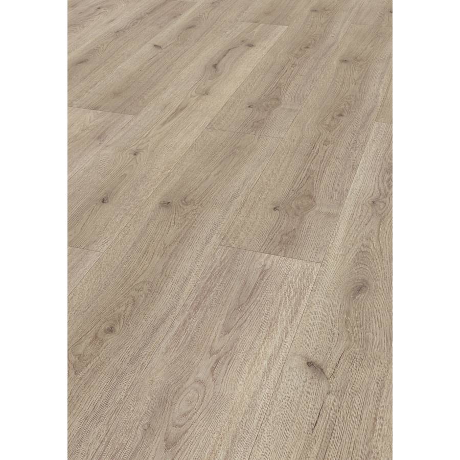 Support HDF. Finition de surface aspect bois. Facilité d'entretien et antistatique. - Compatible sol chauffant réversible. Assemblage clic angulaire. - Classe 31. Résistance à l'abrasion AC3. - Lames à bords droits de 1376 x 193 x 7 mm. Colis 2,39 m².