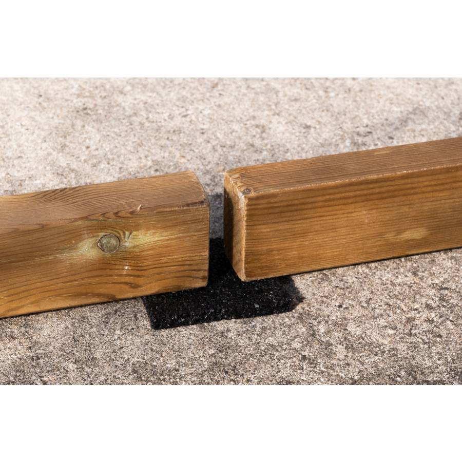 Patins en caoutchouc recyclé et recyclable noir permettant d'isoler les lambourdes du sol. Ecologique, sans entretien, résistant. Garantie contre : termites, champignons. Drainant. Sachet de 10 pièces.